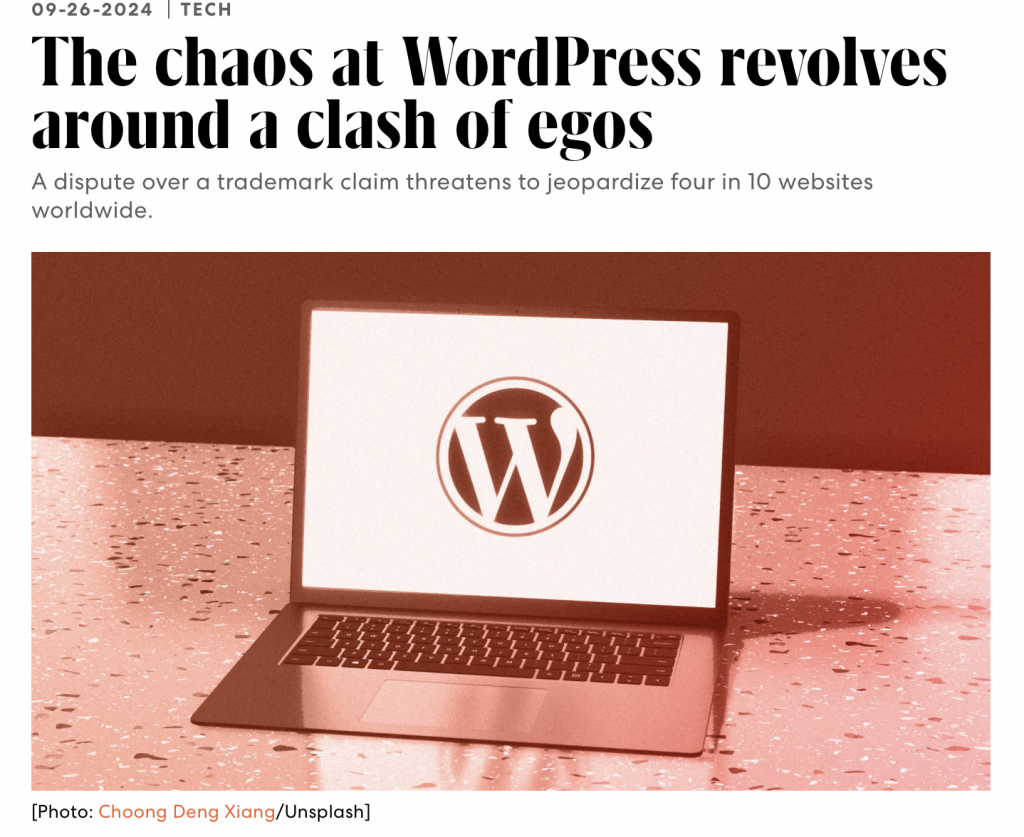 Read more here: https://www.fastcompany.com/91209753/the-wordpress-drama-could-have-major-implications-for-the-internet?